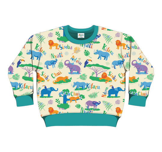 Green | Cream - Big 5 Safari Animals Sweat Shirt