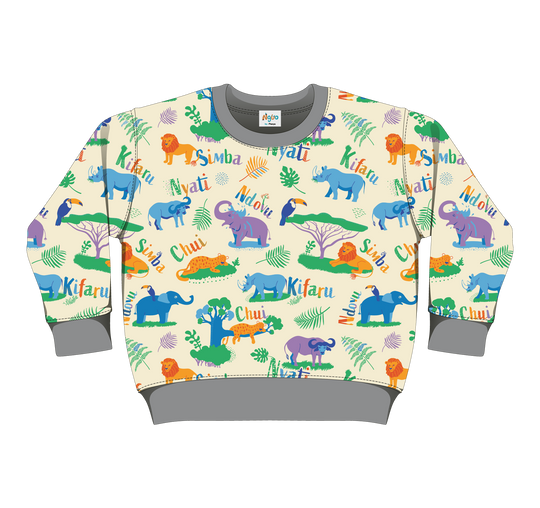 Grey | Cream - Big 5 Safari Animals Sweat Shirt
